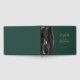 Dieses elegante Gästebuch besticht durch ein schwarzes Aquarell-Design, das mit Imitaten bestickt ist und mit goldenen Glitzer besticht. Anpassen Sie den goldfarbenen Text einfach auf einem smaragdgrünen Hintergrund an, wobei die Namen des Paares in der Kalligraphie der Schrift über einen großen Ampersand liegen. Fügen Sie dem Vorder- und Rückgrat einen zusätzlichen Text Ihrer Wahl hinzu.