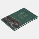Dieses elegante Gästebuch besticht durch ein schwarzes Aquarell-Design, das mit Imitaten bestickt ist und mit goldenen Glitzer besticht. Anpassen Sie den goldfarbenen Text einfach auf einem smaragdgrünen Hintergrund an, wobei die Namen des Paares in der Kalligraphie der Schrift über einen großen Ampersand liegen. Fügen Sie dem Vorder- und Rückgrat einen zusätzlichen Text Ihrer Wahl hinzu.