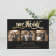 Elegante Schwarz-Gold Hochzeit 4 Foto speichern Sie die Dattelkarten mit moderner Kalligraphie. Sie können diese Karte ganz einfach mit Ihren Bildern und Hochzeitsdetails, einschließlich einer Hochzeitswebsite, personalisieren.