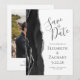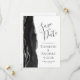 Der links Rand dieser eleganten modernen Hochzeit speichern Sie die Dattelkarte mit einem schwarzen Aquarellrahmen in Aquarellfarbe, der mit Imitaten silbernen Glitzer bestickt ist. Der individuell anpassbare Text kombiniert handgeschriebene Holzkohle, Kupferplatte und kursiv Schriftart auf weißem Hintergrund. Auf der Rückseite, einfach das Beispielbild durch ein Foto der künftigen Braut und Bräutigam ersetzen, und fügen Sie eine zu drei Zeilen zusätzliche Informationen, wie Ihre Hochzeitwebsite URL.