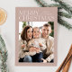 Moderne Weihnachtskarte mit "Fröhlicher Weihnachten", die ganz oben im Design in angesagter, weißer Schrift mit blassviolettem Hintergrund ausgestellt ist. Personalisieren Sie die einfache Weihnachtskarte mit Ihrem Familiennamen und Foto. Die Karte kehrt zurück, um einen blasslila Hintergrund mit subtilen weißen Punkten (Schnee) anzuzeigen.