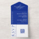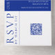 Elegance trifft auf Bequemlichkeit mit diesem modernen Blue und White Wedding Einladung, mit einem eleganten Design. Dieses All-in-One-Design enthält einen anpassbaren QR-Code für Online-UAWG. Vereinfachen Sie Ihre Hochzeitsvorbereitungen und machen Sie Ihren Gästen einen bleibenden Eindruck. Moderne Romantik mit diesem modernen, alles in einer Einladung.