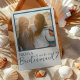 Dies ist ein modernes und elegantes Modell der "Will You Be My Bridesmaid"-Karte. Das Design verfügt über ein Single-Foto mit blauer Kontur und Typografie. Auf der Rückseite dieser Karte ist Platz für eine spezielle Nachricht, oder Sie können löschen und eine handschriftliche Notiz hinzufügen.