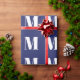 Modernes, blau-weißes, individuelles Monogramm Geschenkpapier
