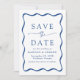 Ankündigen Sie Ihre bevorstehende Hochzeit im Stil mit unserem Modern Wavy Frame Foto speichern Sie die Daten! Das Design ist mit Namen und Hochzeitsdetails gerahmt, die durch einen blauen Rahmen im Kontrast zu einem hellcremefarbenen Hintergrund gekennzeichnet sind. Auf der Rückseite des Retro Save the Date zeigt Ihr Foto der vertikalen Verlobung mit Ihrer Hochzeitswebsite unten angezeigt. Diese exquisite Mischung aus modernem und Retro-Design sorgt dafür, dass Ihr Save the Date nicht nur eine Erinnerung Ihrer bevorstehenden Feier ist, sondern ein hochgeschätzter Sake, der das Wesen Ihrer Liebe festlegt.