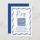 Modernes Blue Wavy Frame QR Code Wedding RSVP Begleitkarte