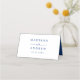 Fügen Sie Ihrem Hochzeitsempfang oder einer besonderen Veranstaltung eine stilvolle Touch mit diesen modernen Wavy Frame-Hochzeitszimmern hinzu! Das Retro-Design zeigt "Table" in einem handgeschriebenen blauen Skript mit Platz für den Namen und die Tischnummer Ihres Gastes. Ein blau-gewellter Rahmen umgibt das Design kontrastierend mit einem weißen Hintergrund. Auf der Rückseite der gefalteten Platzkarte finden Sie Ihre Namen und Ihr Hochzeitstag in fett weißer Schrift.