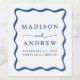 Fügen Sie Ihrer Hochzeitsempfehlung, Ihrer Verlobungsfeier oder dem Probe-Dinner eine personalisierte Touch mit diesen individuellen Wavy Frame Weinetiketten hinzu. Das Design zeigt Namen, Hochzeitstag und Hochzeitsort in fett blauer Schrift, umgeben von einem blauen, welligen Rand, der mit einem weißen Hintergrund kontrastiert. Die Retroweinetiketten koordinieren sich mit unserer Hochzeitskollektion Modern Wavy Frame.