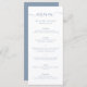 Elegantes, eigenständiges Hochzeitsmenü mit modernem Script-Schriftart. Einfach online personalisieren. Die passenden Elemente ergänzen dieses minimalistisch dustig blaue Hochzeitsmenü.