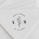 Maßgeschneiderte Hochzeitsmonogramm-Briefmarke mit modernem böhmischen Bogen und handzeichnend Blattdesign.