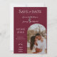 Ankündigen Sie Ihren Hochzeitstag mit diesem modernen Boho Arch Foto in rot Ankündigung Datum freihalten. Save the Date bietet das Design eine Bogenstil-Foto-Platzierung für das glückliche Paar mit elegantem und modernem Textdesign. Fügen Sie ein Foto und Hochzeitsdetails zu anpassen.
