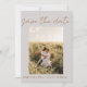 Das moderne Boho Gray One Foto Save the Date ist eine stilvolle und trendige Einladung mit einem Single Foto Set vor einem schicken grauen Hintergrund mit bohemian-inspiriert Akzenten. Diese Einladung eignet sich hervorragend für die Ankündigung einer bevorstehenden Hochzeit, eines Jubiläums oder eines anderen besonderen Ereignisses. Mit seiner einzigartigen Mischung aus modernem und boho Stil, wird diese Einladung sicher einen bleibenden Eindruck auf Ihre Gäste machen und Ihre einzigartige Persönlichkeit und Stil widerspiegeln. Wir hoffen, dass Sie diese Einladung gerne persönlich für Ihren besondere Anlass gestalten können und gratulieren Ihnen zu Ihrem bevorstehenden Fest!