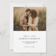 Modernes und minimalistisches Design mit einem gewölbten Rahmen-Foto auf weißem Hintergrund mit einem schlanken handgeschriebenen Kalligrafieschrift und einem 2-Foto-Display. Passen Sie Ihre wichtigen Informationen zusammen mit Ihren bevorzugten Fotos auf Vorder- und Rückseite einfach an. Ideal für jedes moderne Hochzeitsthema.