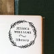 Moderne botanische Wreath Personal Library Buchzeichen Gummi Briefmarke. Die elegante Typografie zeigt Ihren Namen in klassischer Serifenart, gerahmt von einem handgezeichnet botanischen Kranz und einem schicken Texttrenner zwischen Ihrem Namen und "Bibliothek".