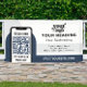 Mit dem Beruflichen QR-Code-Banner für das moderne Branding in stilvollem Marineblau, der idealen Lösung für die Werbung für Ihr Business auf Messen, großen Öffnungen oder bei jedem geschäftlichen Event. Dieses mit hochwertigem Vinyl konzipierte, langlebige Banner eignet sich sowohl für den Innen- als auch für den Außengebrauch und sorgt dafür, dass Ihr Branding in jeder Umgebung gewagt und sichtbar bleibt. Mit einem anpassbaren Platz für Ihr Logo und einem scannbaren QR-Code integriert dieses Banner die moderne Werbetechnik nahtlos mit dem traditionellen Marketing. Dieses QR Code Marketing Banner bietet eine einzigartige Möglichkeit, Ihr Publikum einzubinden. Laden Sie einfach Ihr Logo und QR-Code hoch und lass Kunden direkt mit Ihrer Website, exklusiven Angeboten oder Veranstaltungsdetails per Schnellsuche in Verbindung zu treten. Egal, ob Sie ein neues Produkt auf den Markt bringen, einen Verkauf fördern oder Gäste zu einer großen Eröffnung einladen, dieses anpassbare Banner hilft Ihnen, ein unvergessliches Erlebnis zu bieten, das die Kluft zwischen physischer Präsenz und digitaler Interaktion überbrückt. Mit seinem beruflichen marineblau-blauen Design ist dieses Banner die perfekte Ergänzung zu Ihren Marketing-Materialien. Nutzen Sie es als visuelles Highlight auf Messen, Kongressen oder in Schaufenstern, um Aufmerksamkeit zu erregen und Interaktion zu fördern. Dieses moderne QR Code Advertising Banner ist mehr als nur ein Werbemittel - es ist eine innovative Möglichkeit, die Verlobung der Kunden zu steigern und die Bekanntheit der Marke zu steigern. Es ist somit die ideale Wahl für Unternehmen, die ihre Marketing-Strategie verbessern möchten.