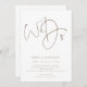 Moderne braune Schrift machen wir einfache Hochzeitseinladung. Verfügbar in digitaler Form und gedruckt. Ein schlichtes, elegantes Design mit hellbrauner Schrift auf Weiß. Stilvolles Set-Skript We Do nimmt die mittlere Bühne an der Spitze.Die Erholung des Textes können Sie leicht personalisieren. Text- und Hintergrundfarben können geändert werden, wenn Sie Ihr Hochzeitstil besser Anzug über die weitere Option anpassen möchten. Ein QR-Code ist auf der Rückseite, damit Ihre Gäste online über Ihre Website antworten können. Ihr QR-Code wird automatisch generiert, um den Beispielcode zu ersetzen, wenn Sie Ihre Website-URL in die Vorlage eingeben.