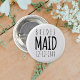 Wenn ein einfacher weißer Bräunungsknopf das ist, was Sie mit einem modernen Schriftart suchen, der Platz für Ihren Hochzeitstag bietet, haben Sie den Knopf Brautparty Button gefunden, den Sie gesucht haben. Füllen Sie das Datum aus und fügen Sie es Ihrem Dienstmädchen an. Karo für mehr aus meinem Laden!