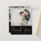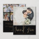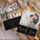 Machen Sie eine Aussage mit dieser modernen Hochzeitskarte danke Ihnen, die luxuriöse Imitate goldene Kalligraphie auf einem schlichten schwarzen Hintergrund. Dieses elegante, zweiseitige Layout ist so konzipiert, dass es fünf Ihrer Lieblings-Hochzeitsfeiern präsentiert. Es eignet sich hervorragend, um Erinnerungen zu teilen und gleichzeitig Ihren Gästen herzlich zu danken. Personalisiert mit Ihren eigenen Bildern und Botschaften, schafft diese Dankeskarte aus Schwarz und Gold einen zeitlosen Sake. Ideal für anspruchsvolle Hochzeiten, glamouröse Feiern oder auch für maßgeschneiderte Post-Hochzeitssendungen.