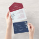 Modernes Burgund, Blaue Hochzeit mit Perforierten All In One Einladung