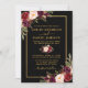 Moderne elegante Watercolor Burgund Blumen, Schwarz und Gold Hochzeitseinladung umfasst bordeauxfarbene Rose, rosa Rosen und botanisches Grün. Foto zurück.