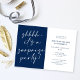 Dieses moderne Überraschungs-Party lädt mit einem klassischen marineblau Hintergrund mit weißem Schrift auf der einen Seite und einer modernen Typografie auf der anderen Seite zum Verweilen ein. Das Drehbuch auf der Vorderseite sagt "shhh... Es ist ein überraschendes Party!" Alle Farben (einschließlich Hintergrund und Skript) sind vollständig und einfach anpassbar. Sie können sogar ein Foto auf der Rückseite hinzufügen.. Benutzen Sie einfach das "Design Tool" im Dropdown-Menü Personalisierung.