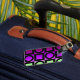 Modernes Design mit Kreise und Quadraten auf farbenprächtigem, schattigem Hintergrund.