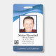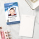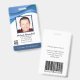 Personalisiertes abstraktes ID-Abzeichen mit coolem, modernem, blau gestaltetem Design über dem Foto des Softwareingenieurs oder IT-Reparaturtechnikers. Fügen Sie Ihr eigenes Foto und Ihre persönlichen Informationen hinzu, einschließlich Jobbezeichnung, Abteilungsname, ID-Nummer, Ausstellungs- oder Ablaufdatum sowie Firmenname und Firmenlogo. Kann mit Ihrem persönlichen Sicherheitsbarcode auf der Rückseite für Zugriff und Freigabe angepasst werden.