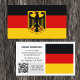 Visitenkarten: Moderne deutsche Visitenkarte mit der Flagge Deutschlands auf der einen Seite und Ihren Details zusammen mit dem scannbaren QR Code, der kleinen deutschen Flagge auf der anderen Seite. Einfache Anpassung des Links im QR-Code für Ihre Website oder Mobilnummer, Personalisieren Sie Namen, Adressdaten oder ändern Sie das Flag auf der Seite für Ihr Firmenlogo, persönliches Foto oder ein anderes Bild. Machen Sie es zu Ihrem Geschäft oder nur Karte für den Umzug Haus.