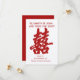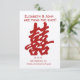 Diese Modern Double Happiness Save the Date Card besteht aus dem Zeichen "Double glückiness" auf Chinesisch in rotem Glitzer, sowie aus anpassbaren Namen, Datum und Ort.