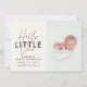 Modernes Drehbuch Foto hallo wenig eine einfache stilvolle Geburtsankündigung. Moderner Polka-Dot-Backer.