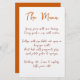 Dieses lässige und moderne Hochzeitsmenü mit einem Schriftart, der die Handschrift nachahmt, eignet sich perfekt für eine Sommerhochzeit, Hochzeit im Herbst, lässige Hochzeit oder jede andere Feier, bei der Sie individuelle Menükarten verwenden möchten. Dieses Menü-Template verfügt über einen verbrannten orangen Hintergrund auf der Rückseite der Karte - alle Farben dieser Karte können im Design-Tool angepasst werden! Dort können Sie auch die Position des Textes ändern.
