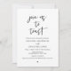 Schöne moderne schöne Lässige Minimal, Schwarz-Script-Schriftart, Hochzeit Probe Dinner Einladung Karte (mit uns Toast). Dies ist ideal für Ihre Hochzeit abends Probe, Abendessen und Party feiern. Fügen Sie Ihre Daten in passender Schriftart / Schrift hinzu.
