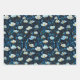 Modernes, dunkelblaues Mohnmuster Geschenkpapier Set