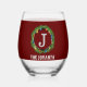 Modernes dunkelrotes Monogramm Weinglas Ohne Stiel
