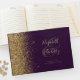 Dieses elegante Gästebuch zeigt eine links Grenze von Imitaten Gold Glitzer auf einem dunklen lila Hintergrund. Verändern Sie den goldfarbenen Text einfach mit den Namen des Paares in der Kalligraphie der Schrift über einen großen Ampersand. Fügen Sie dem Vorder- und Rückgrat einen zusätzlichen Text Ihrer Wahl hinzu.