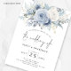 Moderne Dusty Blue Florals Foto Hochzeit. Verfügbar in digitaler Form und gedruckt. Elegante Blumen, hellblau und weiß, fließen von oben nach unten. Die Hochzeit Of ist in einem handgeschriebenen Set-Skript. Personalisieren Sie die Erholung des Textes einfach auf Ihre eigenen Daten. Ersetzen Sie das Beispielbild auf der Rückseite durch das eigene.