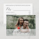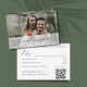 Eine elegante UAWG-Antwortkarte mit personalisierter Touch, um Ihre Hochzeitsplanung nahtlos zu gestalten. Diese ausgeklügelte Karte verfügt über Ihr individuelles Foto und fügt ein persönliches und herzliches Element hinzu. Die Salbei-grünen Akzente sorgen für eine Touch natürlicher Eleganz und ergänzen das schlichte und dennoch stilvolle Design perfekt. Der QR-Code ist ein praktischer Code, der direkt auf Ihre Hochzeitsdetails verweist und es Ihren Gästen so leicht macht, auf wichtige Informationen zu antworten. Diese RSVP-Karte verbindet Praxisnähe mit Schönheit und sorgt dafür, dass Ihre Gäste mühelos an Ihrem besonderen Tag teilhaben können.