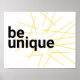 Grafisches Design eines Sprichworts "Be Unique" mit Linien in Gelb und Schwarz. Städtische Typografie.