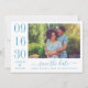 Moderne und stilvolle Hochzeitskarten sichern die Datumskarten mit einem horizontalen Verlobung-Foto mit typografischem Design, das fett und elegant Hochzeitstermin-Zahlen mit einem einfachen Monogramm der Braut und Bräutigam-Namen beinhaltet. Farblich blau / Stahlgrau und weiß.