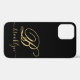 Moderner, minimalistischer Schwarz-Gold personalisierter Name mit Monogramm iPhone 12 Case. Es verfügt über ein Monogramm Initial in Serif-Schriftart und hübsche handgeschriebene Textvorlage mit Vornamen in Gold, weiße Farbe auf schwarzem Hintergrund. Großartiges, weibliches personalisiertes Geschenk. Wenn Sie Hilfe oder passende Artikel benötigen, kontaktieren Sie mich bitte.