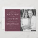 Moderne Foto Hochzeitseinladung mit Ihren Hochzeitsdetails über das verlassen Design in Weißschrift mit Kalligraphie-Schriftzeichen Akzente auf einem weinlila Hintergrund. Personalisieren Sie die Vorderseite der Einladung, indem Sie Ihre Namen, Hochzeitsdetails und vertikale Verlobung Foto. Die Rückseite der Einladung bietet Platz für zusätzlichen Text und Fotos. Entworfen, um mit unserer Hochzeitskollektion "Moderne Elegance" zu koordinieren.