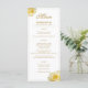 Moderne gelbe rosa Blumenkarte // Diese moderne und elegante Blumenmenüvorlage hat schöne gelbe Rosen und einen eleganten Rahmen. Der Hintergrund ist weiß. Der Text ist in einer goldenen Farbe modernen Skript. Sie können den gesamten Text ganz einfach anpassen - personalisieren Sie ihn mit dem Namen der Braut und des Bräutigams, dem Hochzeitstag und Ihrem Hochzeitsmenü. / Dieses Hochzeitsmenü passt zu anderen Dingen in der Gelben Rosa Midnight Blue Wedding Collection.