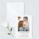 Die moderne, elegante Save the Date-Karte zeichnet sich durch ein minimalistisches Schwarz-Weiß-Design mit einem Foto aus. Mit dem leicht zu bearbeitenden Template können Sie Ihre Hochzeitsdetails individuell gestalten, mit einem eleganten Script-Schriftart und einem klassischen Serif-Schriftart. Dann tauschen Sie das Foto vorne durch Ihr eigenes aus. Karo in der Kollektion "Modernes Elegantes".