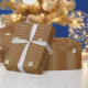 Weihnachtsverpackungspapier mit einem modernen eleganten Streifen Monogramm-Design. Großartiges Geschenk mit Vorräten für die Saison. Passen Sie die Geschenkpackung mit dem gewünschten Monogramm oder Initial an. Braun und cremefarben. Verwenden Sie die Vorlage, um Ihr eigenes Mono-Papier zu erstellen.