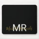 Modernes, elegantes, schwarzes, goldfarbenes Monogramm-Skript-Mauspad. Einfache, saubere mit Monogramm personalisierte Schreibtischmauspad mit Ihren Initialen und Namen. Schriftart- und Textfarben sind vollständig anpassbar.