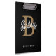 Die **Modern elegante Monogram Name Black Gold Script Clipboard** ist ein ausgeklügeltes Accessoire für Stil und Funktionalität. Mit einem schwarzen Hintergrund und einem eleganten Goldskript kann diese Zwischenablage mit einem Monogramm und einem Namen personalisiert werden. Es eignet sich hervorragend, um Dokumente zu organisieren, Notizen zu machen oder Informationen in einem beruflichen Rahmen zu präsentieren. Das dauerhafte Design sorgt für Langlebigkeit, während die individuell anpassbaren Details eine persönliche Touch verleihen und somit für jeden, der sein Büro oder Studium mit einer Touch von Eleganz verbessern möchte, eine ideale Wahl darstellen.