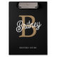 Modernes elegantes Monogramm Name Black Gold Scrip Klemmbrett