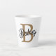 Die moderne elegante Monogram Name Black Gold Script Latte Tasse zeichnet sich durch ein stilvolles Design aus, das perfekt zum Genießen Ihrer Latte- oder anderen heißen Getränke geeignet ist. Diese Tasse ist mit einem schlichten schwarzen Äußeren und einem eleganten Goldskript konzipiert, das ein personalisiertes Monogramm und einen Namen zeigt. Die raffinierte Farbkombination und die elegante Typografie verleihen Ihrem Kaffeemaschine eine Touch Klasse und machen ihn zu einer idealen Wahl sowohl für den persönlichen Gebrauch als auch als nachdenkliches Geschenk. Seine größere Größe bietet großzügige Speisen mit Latten, Cappuccinos oder heiße Schokolade, die sowohl praktische als auch stilvolle Gerichte anbieten.