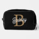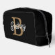 Das moderne, elegante Monogram Name Black Gold Script Dopp Kit bietet eine schicke und raffinierte Möglichkeit, das Wichtigste zu speichern. Dieses Dopp-Kit verbindet Stil mit Funktionalität und zeichnet sich durch sein elegantes schwarzes Design und das luxuriöse Gold-Script-Monogramm aus. Ideal für Reisen oder den Alltag und bietet eine personalisierte und elegante Touch für Ihre Pflegeroutine. Das langlebige Material sorgt dafür, dass Ihre Artikel gut geschützt sind, sodass es eine praktische und modische Wahl ist.