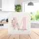 Erstellen Sie Ihren eigenen personalisierten Untersetzer mit einem individuellen Buchstaben Initial Monogramm mit elegantem Blumenstrauß und modernem Typografie-Design.